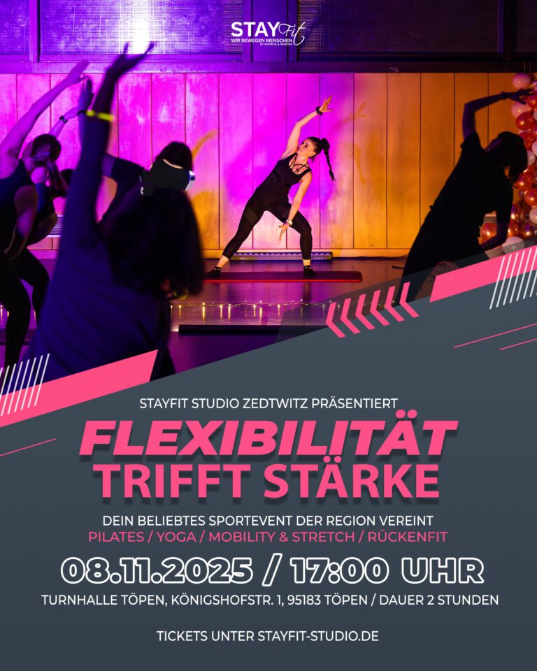 Erlebe eine einzigartige Kombination aus Pilates, Yoga, Mobility & Stretch sowie Rückenfit – perfekt, um deinen Körper zu stärken, deine Beweglichkeit zu verbessern und Verspannungen zu lösen.